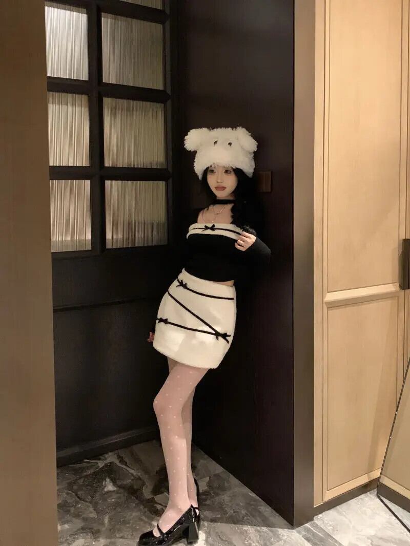 送料無料 アパレル Deeptwon スタイルミニ 2 ピースドレス女性 Y2k 甘い弓長袖ボディコーンドレススーツ冬黒、白 Vestidos ロング ホワイト ブラック リボン 大人ガーリー スウィート キュート カジュアル ウィンター 冬物 AE121288787710706994506 | mihatudai(みはつばい)ネットショッピングならmihatudai