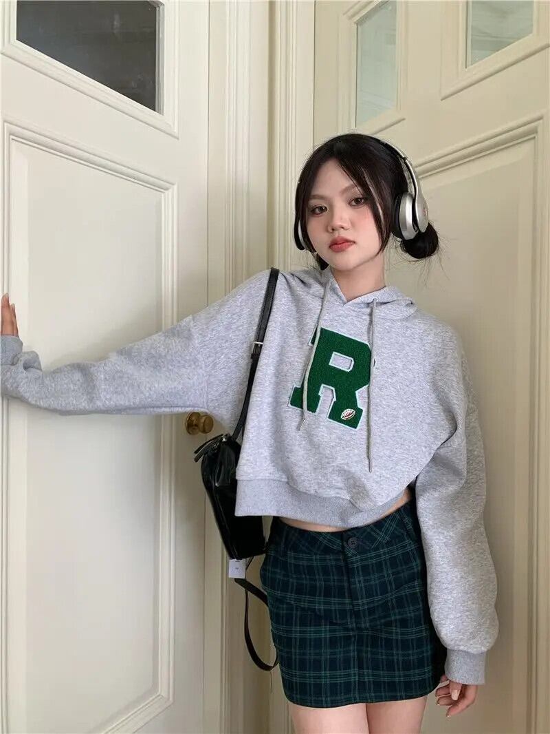 送料無料 アパレル Deeptown ヴィンテージ Kpop グレークロップスウェット女性スタイルレター長袖フード付きプルオーバーヒッピーストリートオーバーサイズトップ ロング シャツ ビンテージ AE121288787736818299851 | mihatudai(みはつばい)ネットショッピングならmihatudai