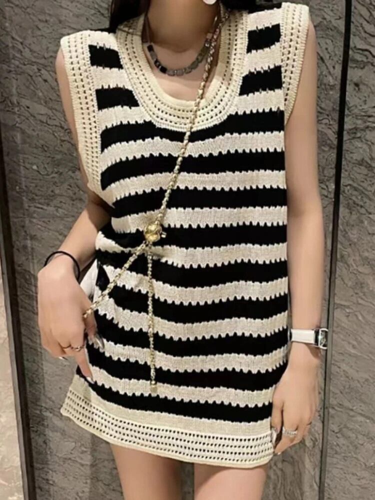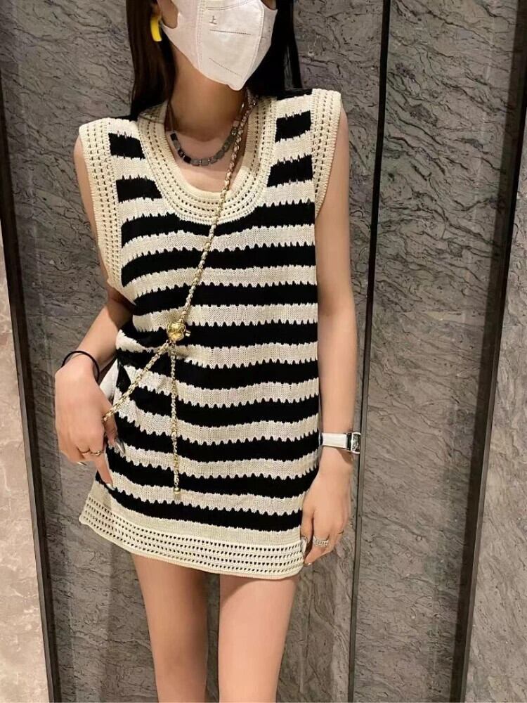 送料無料 アパレル Deeptown Y2K スタイルストライプニットタンクトップス原宿女性のセクシーなノースリーブ中空アウトニット O ネック Tシャツストリート かわいい Oネック AE121288787733149731812 | mihatudai(みはつばい)ネットショッピングならmihatudai