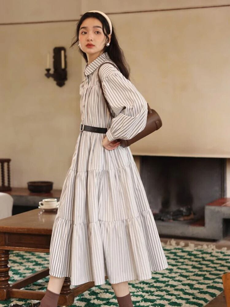 送料無料 アパレル Deeptown オフィス白ストライプシャツドレス女性スタイルベルト長袖チュニックミディブラウスドレス秋 ロング ホワイト オータム 秋物 ハーネス 会社 学校 通勤や通学にも AE12128878774398651324 | mihatudai(みはつばい)ネットショッピングならmihatudai