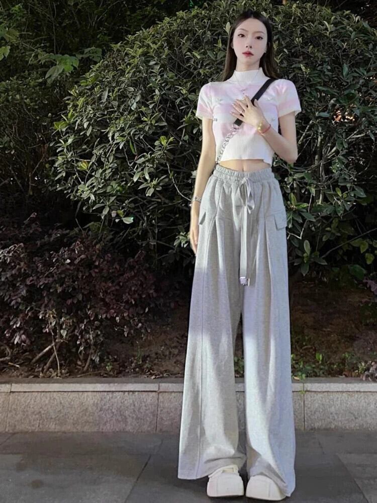 送料無料 アパレル Deeptown グレーワイドレッグジョガーパンツ女性 Kpop の基本オーバーサイズスウェットパンツ原宿だぶだぶのスポーツズボン かわいい ワイドパンツ AE121288787725677904212 | mihatudai(みはつばい)ネットショッピングならmihatudai