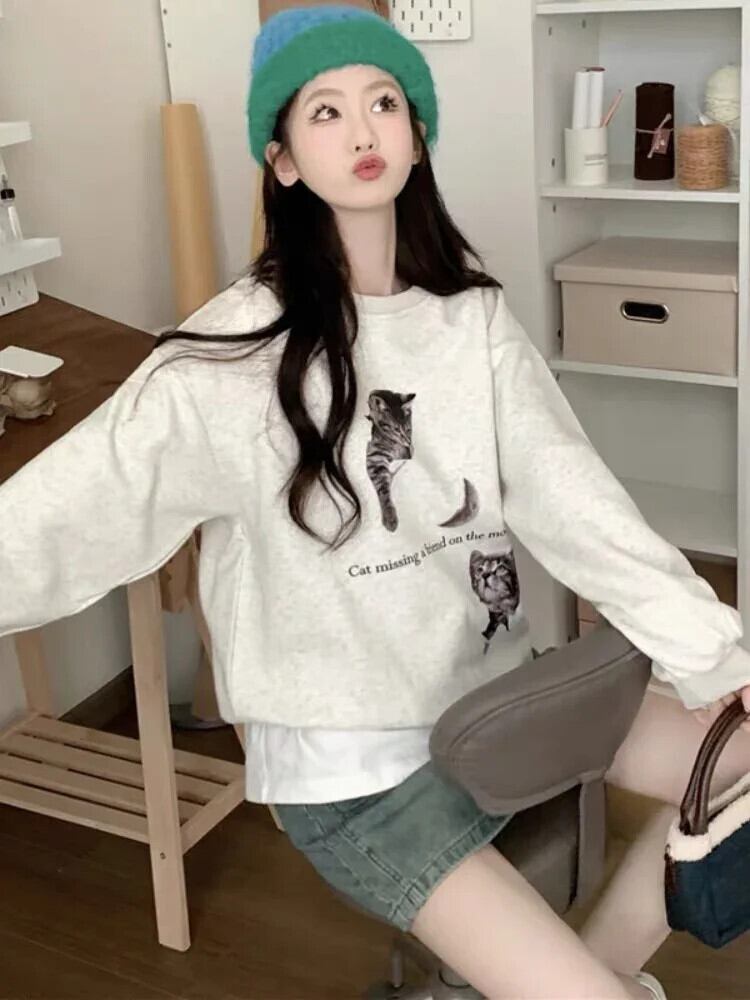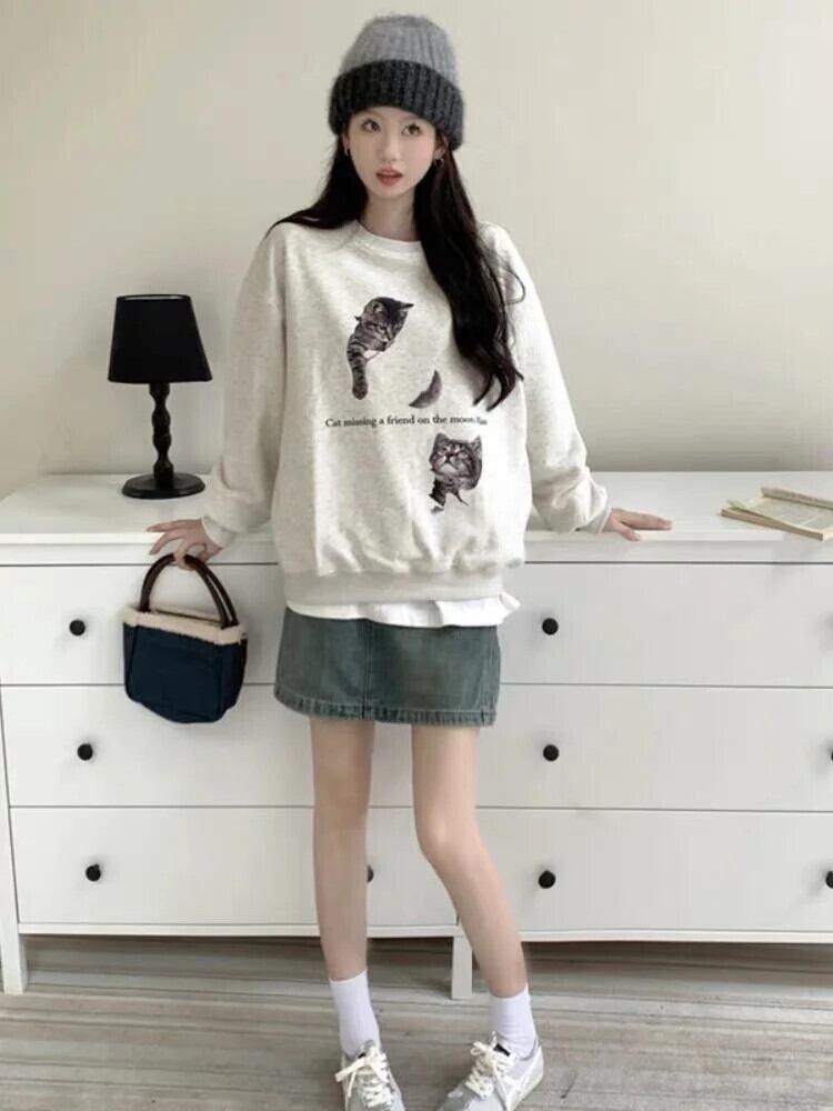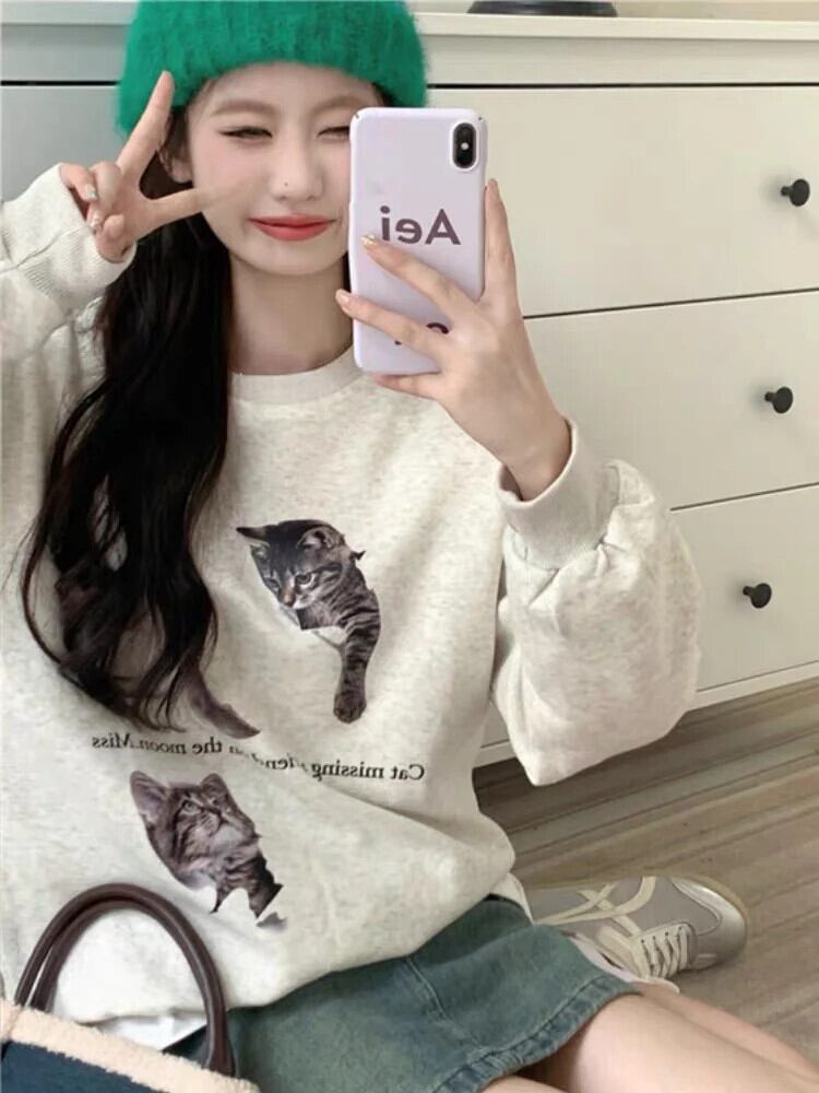 送料無料 アパレル Deeptown Y2k かわいい猫トレーナー女性 ese スタイル長袖プルオーバー Kpop 原宿ストリートオーバーサイズルーズ冬トップス ロング 大人ガーリー スウィート キュート カジュアル ウィンター 冬物 AE121288787727407329088 | mihatudai(みはつばい)ネットショッピングならmihatudai