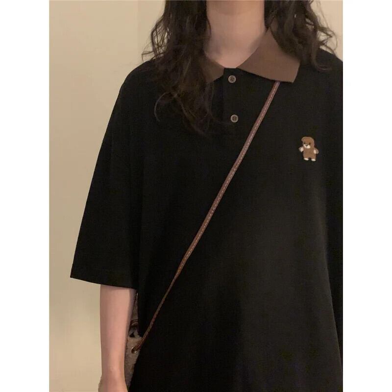 送料無料 アパレル Deeptown ストリート 90s ヴィンテージクマ黒 Tシャツ女性プレッピースタイルポロオーバーサイズ Tシャツ原宿半袖トップ ショート ブラック ハーフスリーブ かわいい ビンテージ AE12128878776020138981 | mihatudai(みはつばい)ネットショッピングならmihatudai