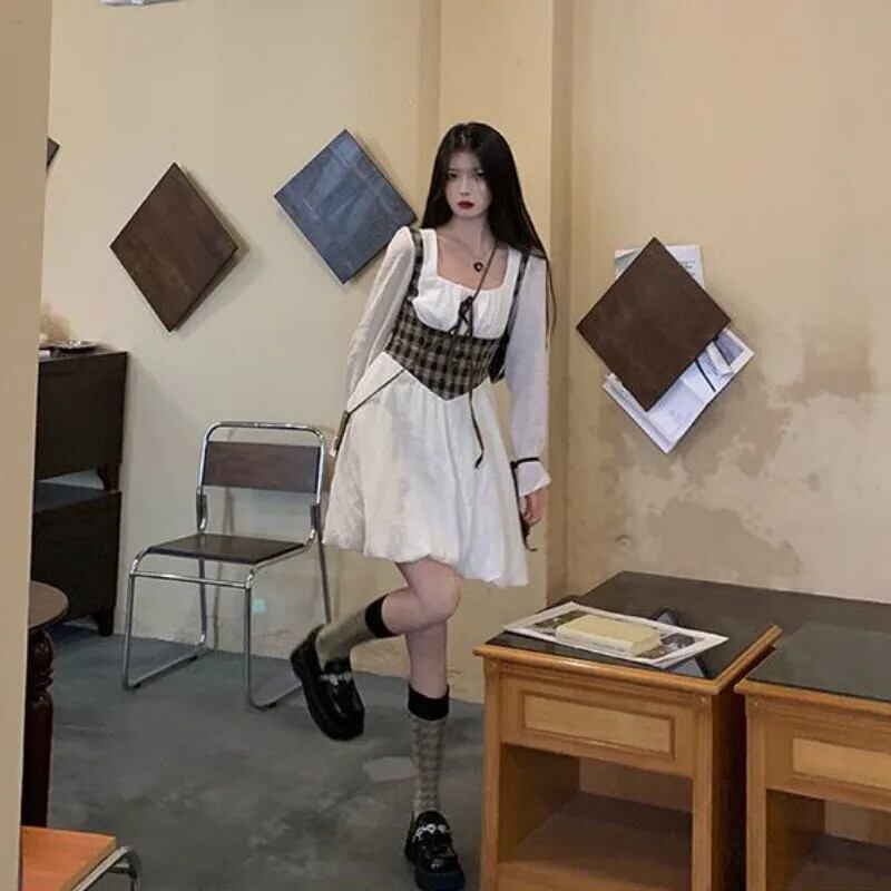 送料無料 アパレル Deeptown ヴィンテージスタイルミニドレス女性 Y2k プレッピーチェック柄パッチワークロングフレアスリーブ A ラインチュニックドレス甘い Vestidos 大人ガーリー スウィート キュート カジュアル Aライン ビンテージ AE121288787799449199466 | mihatudai(みはつばい)ネットショッピングならmihatudai