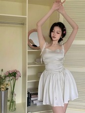 送料無料 アパレル Deeptown スタイルワンピースホワイトサテンドレス女性 Y2k フェアリーコアウエディングドレスチュニックプリーツスリップミニドレス夏 サマー 夏物 AE121288787755713963826 | mihatudai(みはつばい)ネットショッピングならmihatudai
