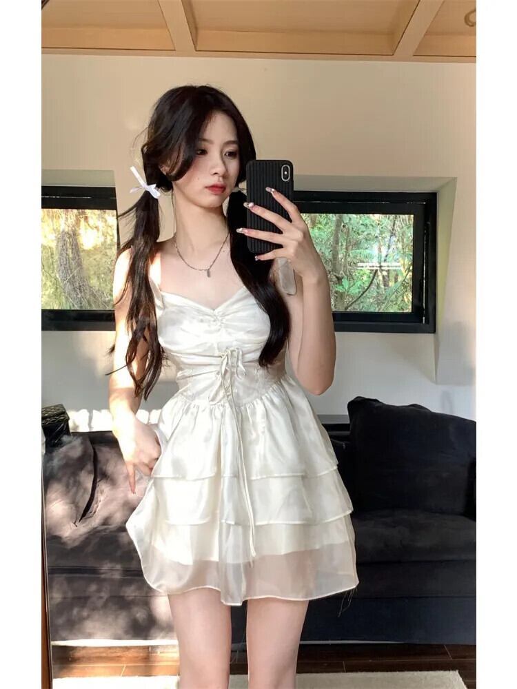 送料無料 アパレル Deeptown Fairycore ホワイト誕生日ドレス女性フレンチスイート Y2k フリルレースアップ背中の開いたチュニックミニスリップドレス ラッフル 大人ガーリー スウィート キュート カジュアル AE121288787786837985161 | mihatudai(みはつばい)ネットショッピングならmihatudai