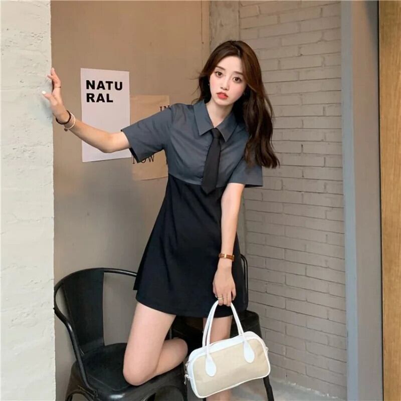 送料無料 アパレル Deeptown ブラックグレーパッチワークミニシャツドレス女性シックなアカデミック入札半袖チュニックドレス気質 ショート ハーフスリーブ AE121288787794514724958 | mihatudai(みはつばい)ネットショッピングならmihatudai