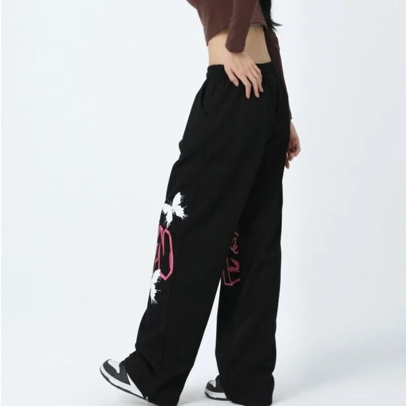 送料無料 アパレル Deeptown ヒップホップ落書き黒スウェットパンツ女性 Kpop オーバーサイズジョガーパンツアメリカンレトロストリートワイド脚トラックパンツ ブラック ワイドレッグ ワイドパンツ AE121288787717771006779 | mihatudai(みはつばい)ネットショッピングならmihatudai