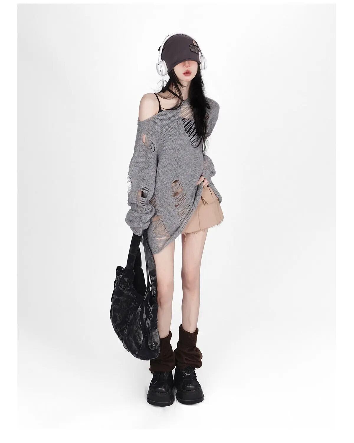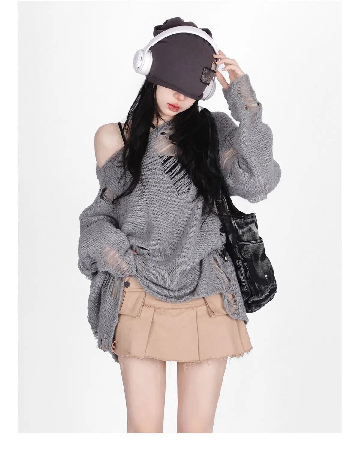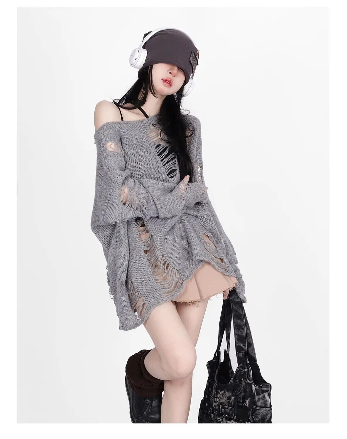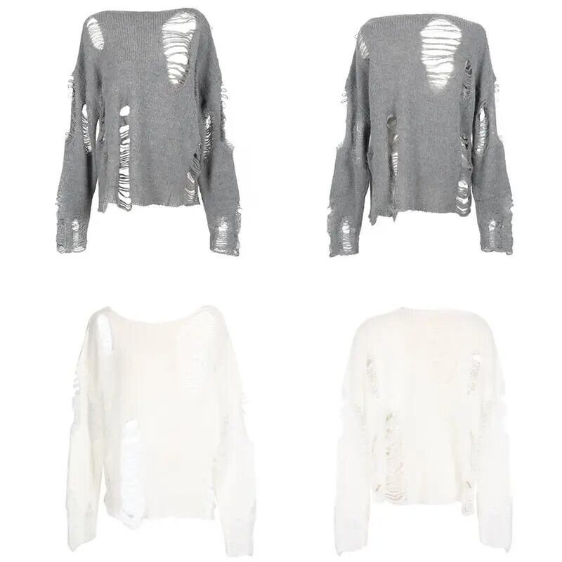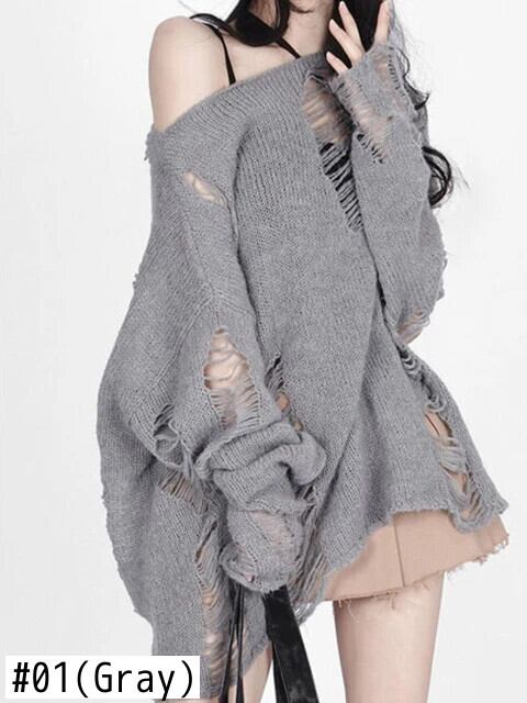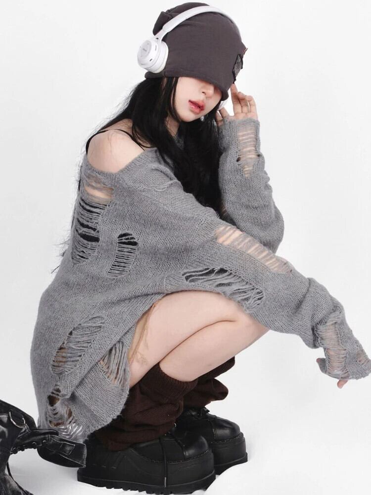 送料無料 アパレル ディープタウンゴシックストリートグレー特大セーター女性原宿ヴィンテージニットジャンパー中空長袖トップス Y2K 服 ロング かわいい ビンテージ AE121288787716936260236 | mihatudai(みはつばい)ネットショッピングならmihatudai