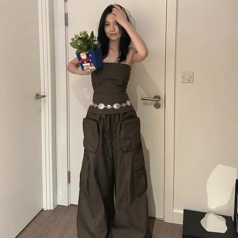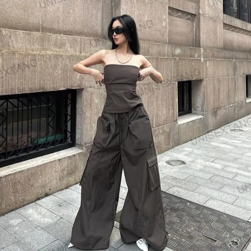 送料無料 アパレル Deeptown Y2k ヴィンテージブラウンカーゴパラシュートパンツ女性 Kpop ストリートワイド脚だぶだぶのズボンアメリカンレトロオーバーサイズパンタロン ワイドレッグ ワイドパンツ ビンテージ AE121288787731592781816 | mihatudai(みはつばい)ネットショッピングならmihatudai