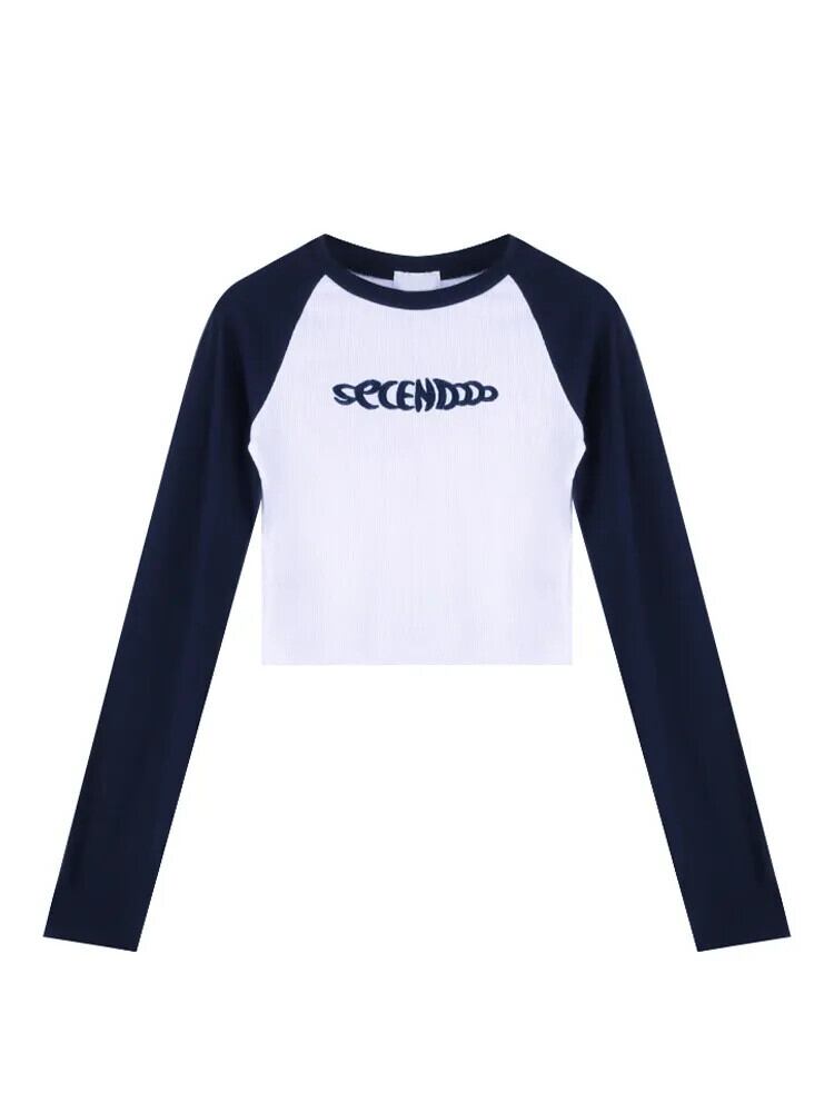 送料無料 アパレル Deeptown サイバー Y2K 刺繍クロップトップ女性スタイル E スリム長袖 Tシャツ Kpop セクシーなパッチワーク O ネック Tシャツ ロング Oネック AE121288787751245564898 | mihatudai(みはつばい)ネットショッピングならmihatudai