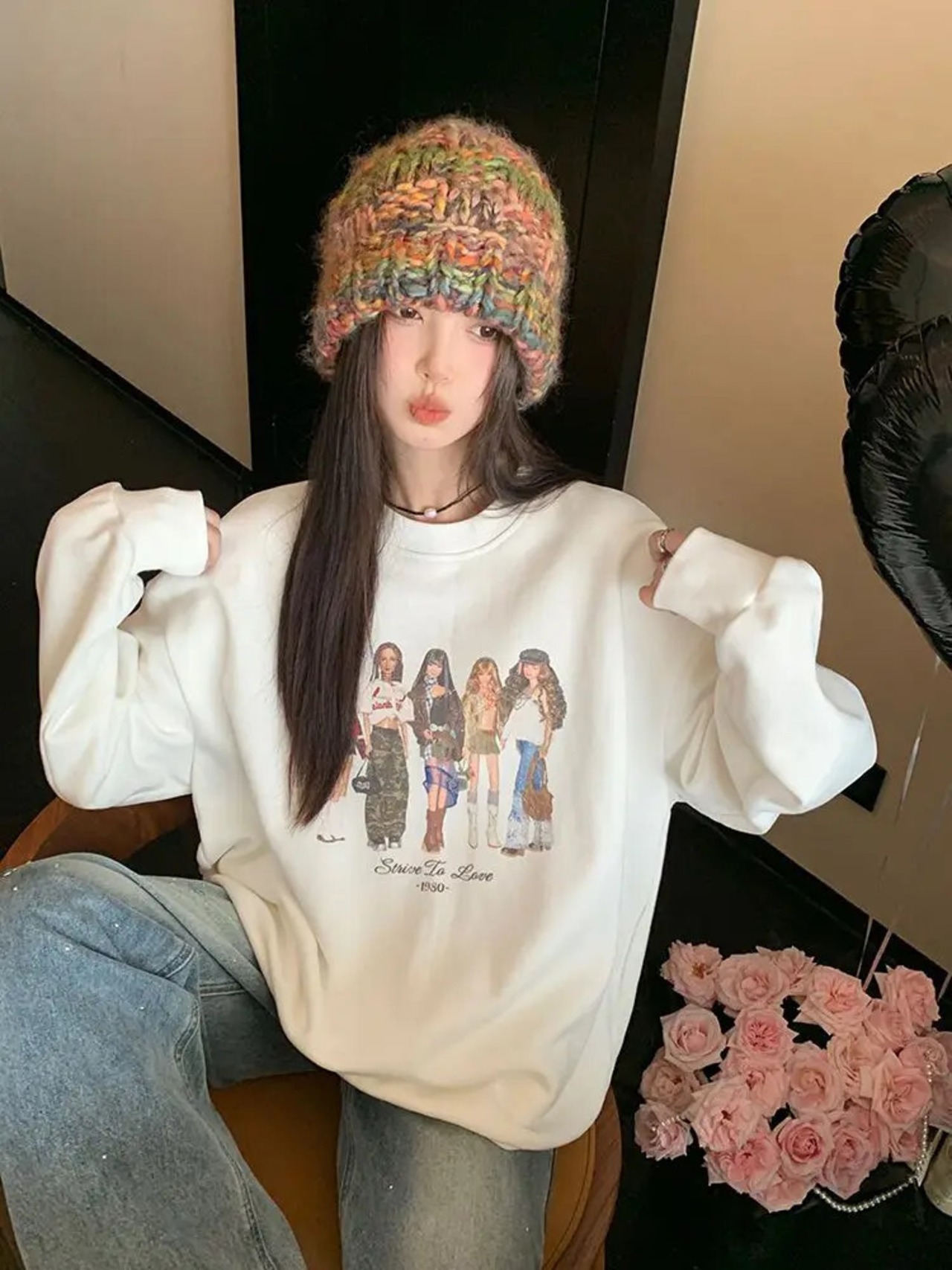 送料無料 アパレル Deeptown Y2k 美的グラフィック白スウェット女性スタイルヴィンテージ長袖プルオーバーアメリカンレトロオーバーサイズトップス ロング ホワイト シャツ ビンテージ AE121288787773954382028 | mihatudai(みはつばい)ネットショッピングならmihatudai