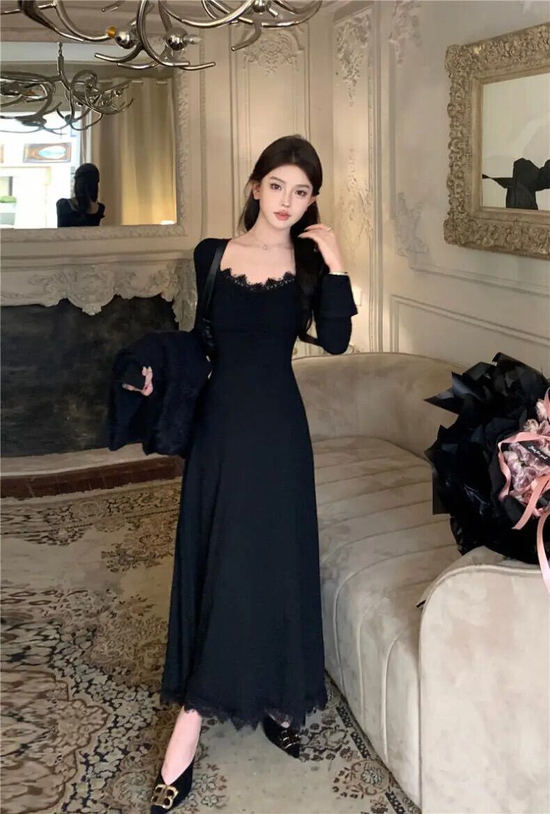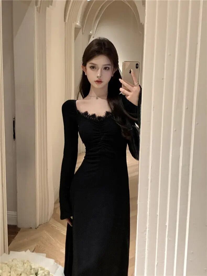 送料無料 アパレル Deeptown コケットセクシーな黒のミディドレス女性スタイルレース長袖チュニックドレス Y2k ゴスレースイブニング Vestidos ロング ブラック AE121288787770127297028 | mihatudai(みはつばい)ネットショッピングならmihatudai