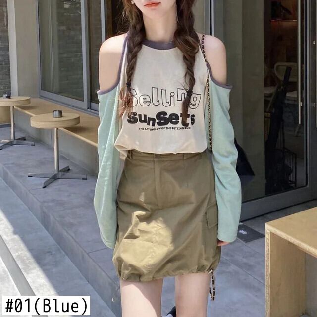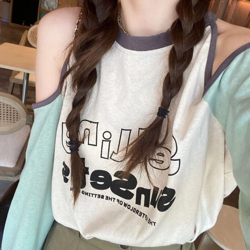 送料無料 アパレル Deeptown レターパッチワーク Tシャツ女性 Y2k 美的オフショルダー長袖 Tシャツ E ストリートルーズトップス ロング AE12128878772085551701 | mihatudai(みはつばい)ネットショッピングならmihatudai