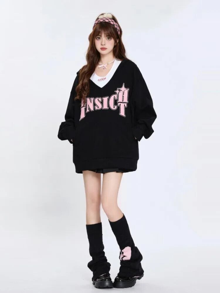 送料無料 アパレル Deeptown Y2k E レター黒スウェットセット女性スタイル 2 枚フード付きプルオーバー原宿ストリートオーバーサイズトップス ブラック シャツ かわいい AE121288787736726548372 | mihatudai(みはつばい)ネットショッピングならmihatudai