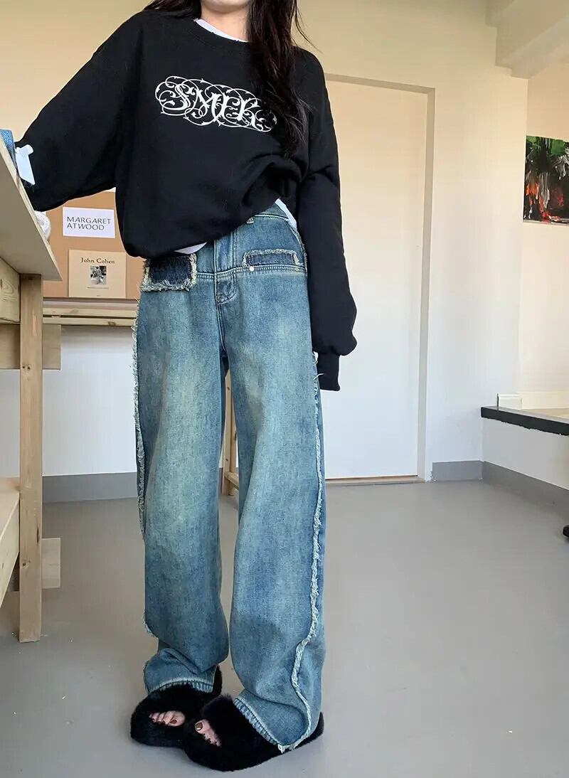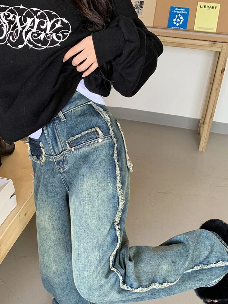 送料無料 アパレル Deeptown ヴィンテージグランジブルージーンズ女性 Y2k ユーズド加工ワイドレッグデニムパンツ原宿ストリートオーバーサイズだぶだぶのズボン かわいい ワイドパンツ ビンテージ AE121288787771777242873 | mihatudai(みはつばい)ネットショッピングならmihatudai