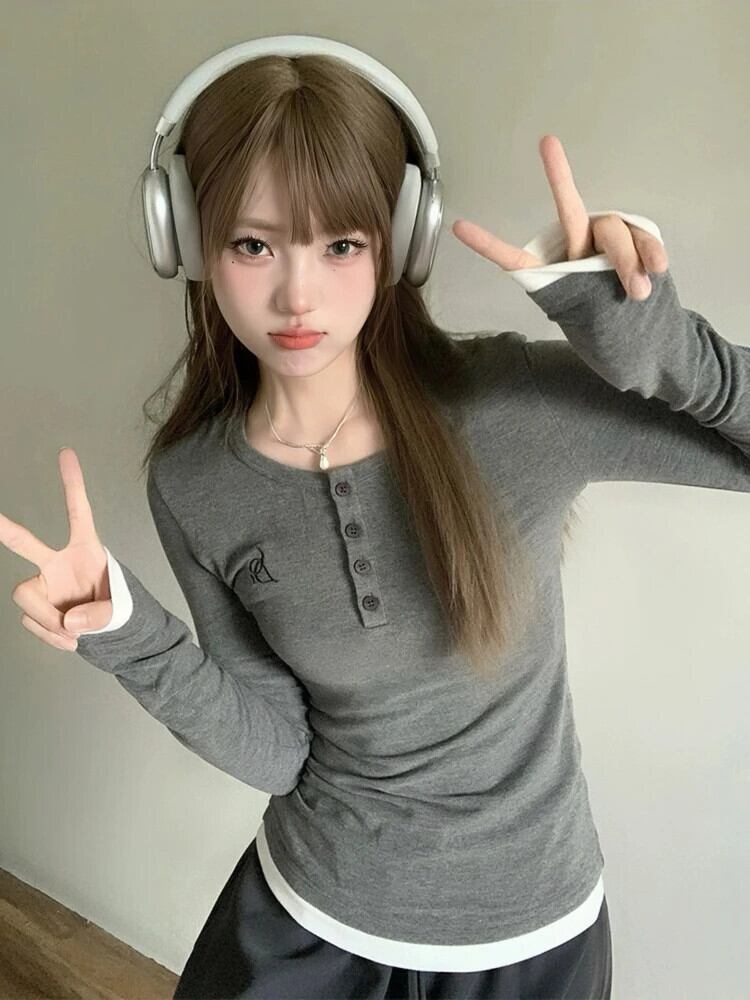 送料無料 アパレル Deeptown Y2k 美的グレー Tシャツ女性 E スタイルパッチワーク長袖 Tシャツ原宿ストリートコルセットトップス秋 ロング かわいい オータム 秋物 AE121288787757083726614 | mihatudai(みはつばい)ネットショッピングならmihatudai