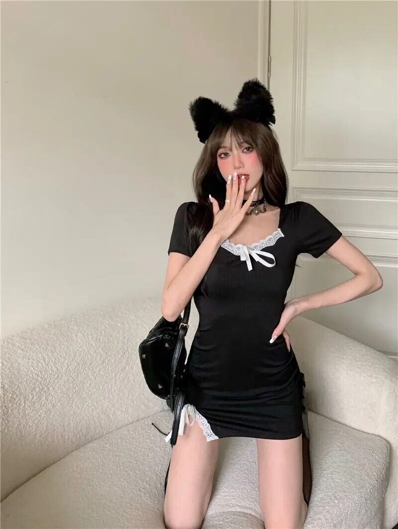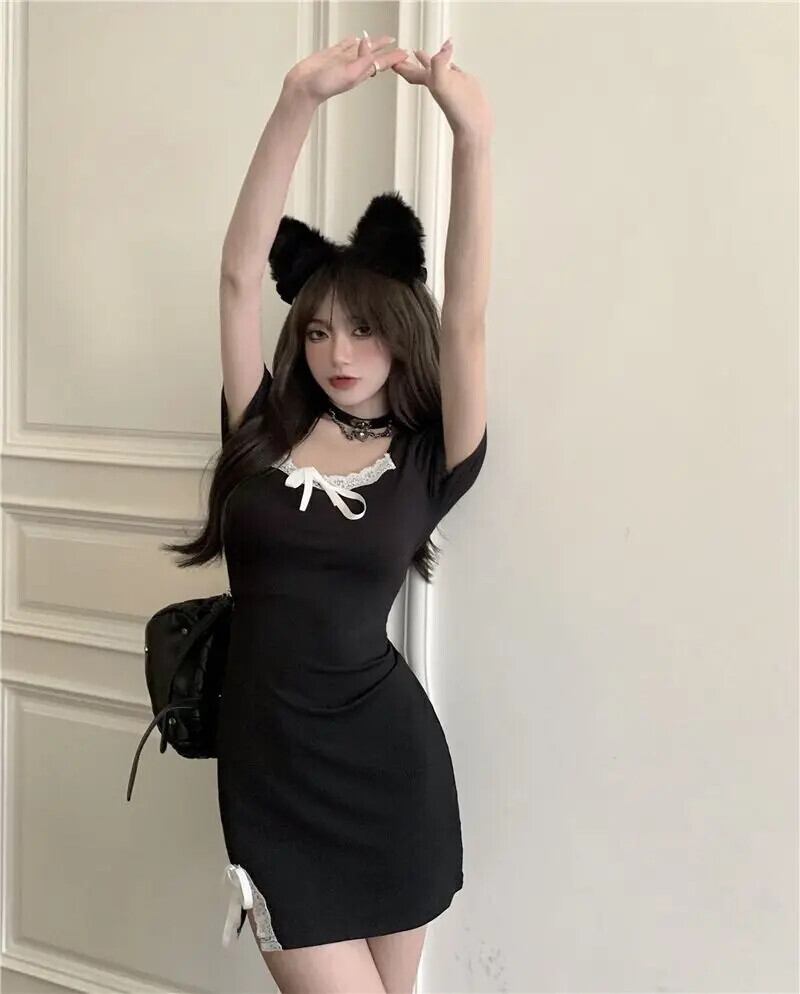 送料無料 アパレル Deeptown コケットセクシーな黒のコルセットドレス女性ゴス Y2k 美的レースサイドこぼれ半袖ボディコーンミニドレスパーティーウェア ショート ブラック ハーフスリーブ AE121288787736794675511 | mihatudai(みはつばい)ネットショッピングならmihatudai