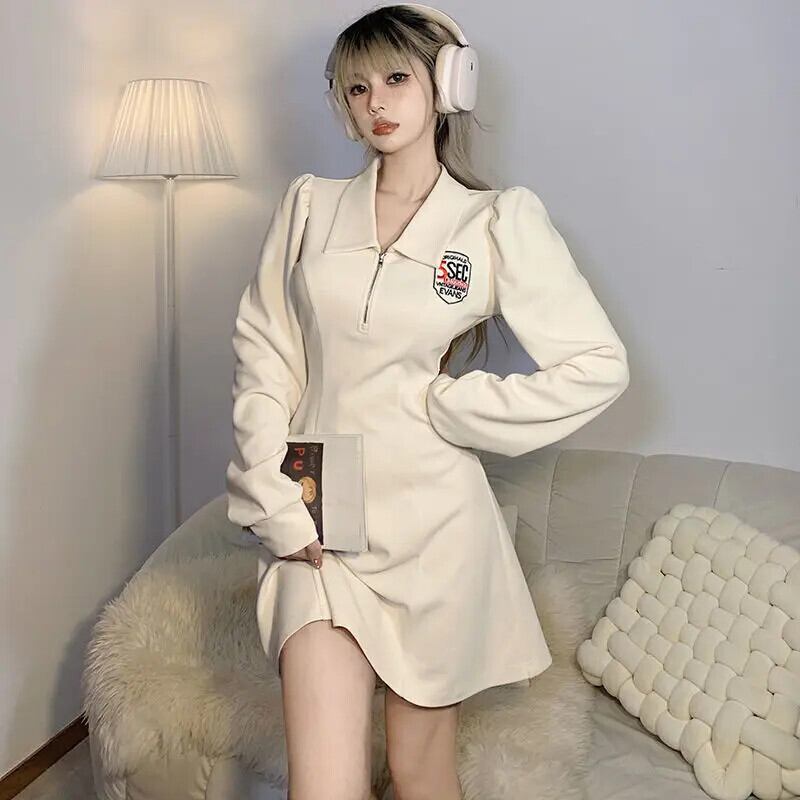 送料無料 アパレル Deeptown ヴィンテージプレッピースタイルベージュスクールドレス女性アメリカンレトロレターポロ長袖チュニックミニ Tシャツドレス秋 ロング オータム 秋物 ビンテージ AE121288787781429513797 | mihatudai(みはつばい)ネットショッピングならmihatudai
