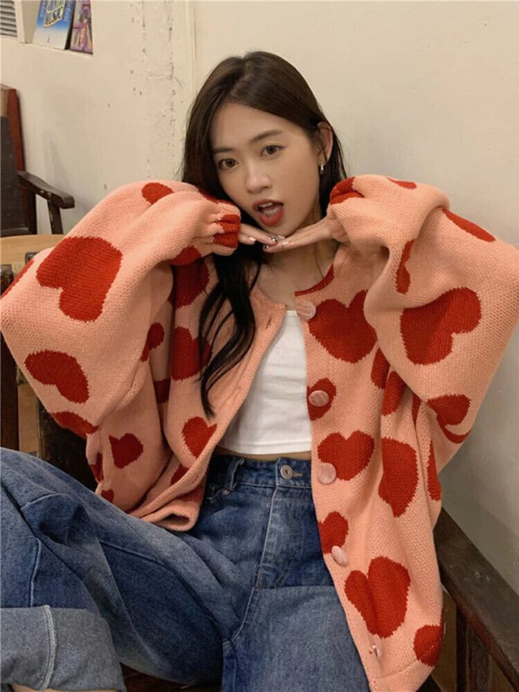 送料無料 アパレル Deeptown ハートピンクカーディガン女性原宿甘いニット特大セーターかわいいルーズオールマッチ Y2K トップス 大人ガーリー スウィート キュート カジュアル AE121288787737935065099 | mihatudai(みはつばい)ネットショッピングならmihatudai