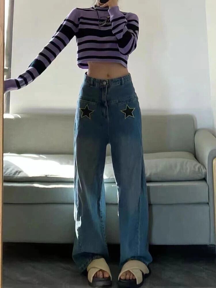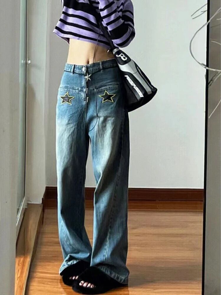 送料無料 アパレル Deeptown Y2k ヴィンテージスターブルージーンズ女性ヒッピー Kpop オーバーサイズデニムパンツ原宿ストリートワイド脚だぶだぶのズボン かわいい ワイドレッグ ワイドパンツ ビンテージ AE121288787748760715889 | mihatudai(みはつばい)ネットショッピングならmihatudai