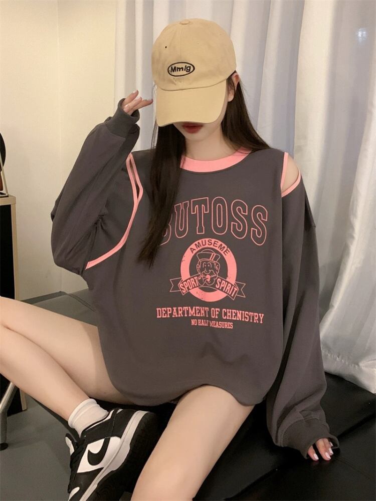 送料無料 アパレル Deeptown スタイル長袖スウェット女性 Y2k Kpop レターオーバーサイズグレープルオーバー原宿ストリートオフショルダートップ ロング シャツ かわいい AE12128878772901143700 | mihatudai(みはつばい)ネットショッピングならmihatudai