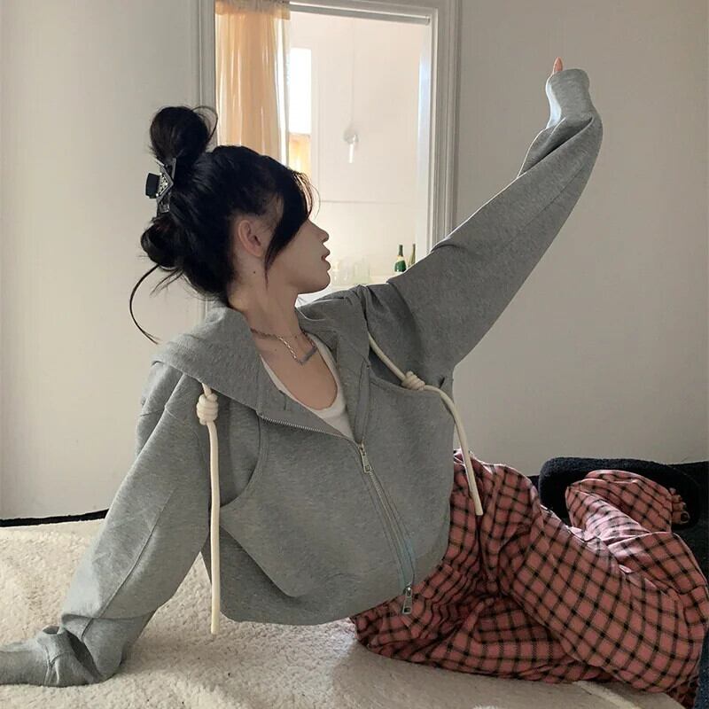送料無料 アパレル Deeptown 原宿ソリッド丈パーカー女性ヒップホップジップアップ特大スウェットヴィンテージルーズトップスコート シャツ かわいい ソリッドカラー ビンテージ AE121288787768403857451 | mihatudai(みはつばい)ネットショッピングならmihatudai