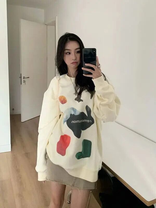 送料無料 アパレル Deeptown Y2k Kpop ヴィンテージグラフィックベージュスウェット女性長袖プルオーバーアメリカンレトロオーバーサイズルーズトップス ロング シャツ ビンテージ AE121288787732008195199 | mihatudai(みはつばい)ネットショッピングならmihatudai