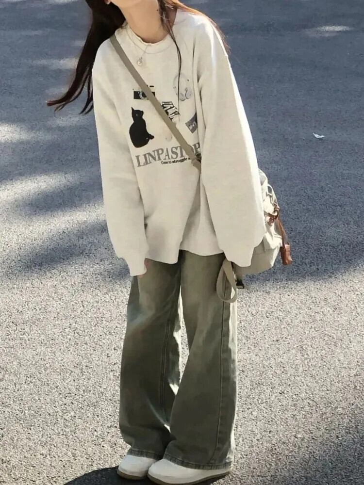 送料無料 アパレル Deeptown グラフィックグレースウェット女性原宿 Kpop 長袖プルオーバー Y2k アメリカンレトロオーバーサイズルーズトップス ロング シャツ かわいい AE121288787781824359795 | mihatudai(みはつばい)ネットショッピングならmihatudai