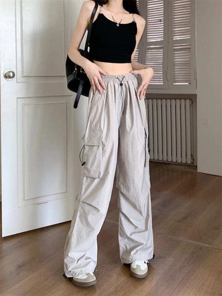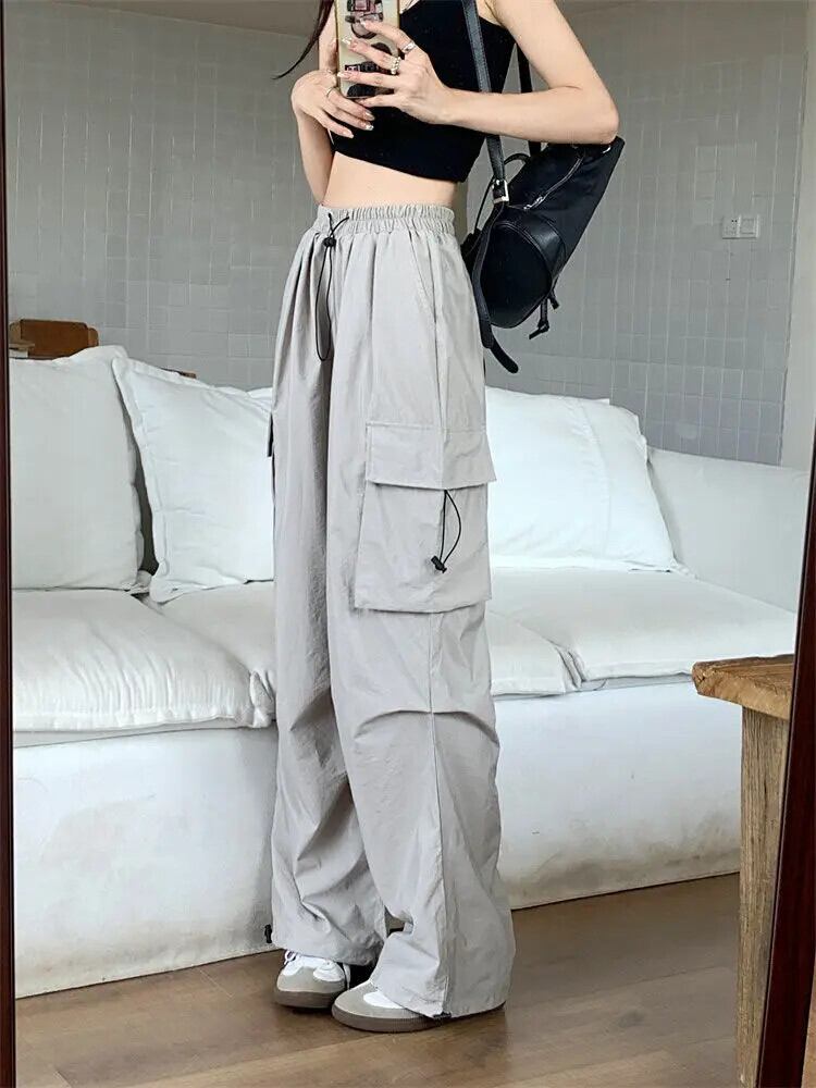 送料無料 アパレル Deeptown Kpop ヒッピーグレーカーゴパラシュートパンツ女性ワイドレッグだぶだぶのスウェットパンツ原宿 Kpop オーバーサイズズボン かわいい ワイドパンツ AE121288787770673478034 | mihatudai(みはつばい)ネットショッピングならmihatudai