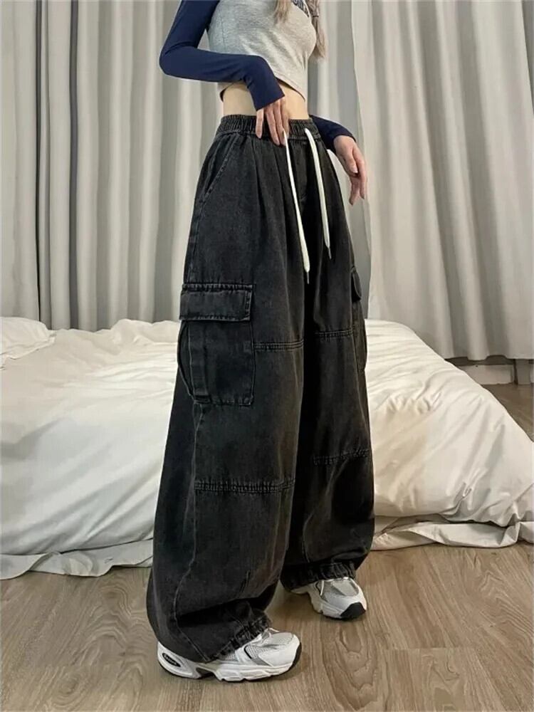 送料無料 アパレル Deeptwon 原宿ヴィンテージブルーカーゴジーンズ女性オーバーサイズ Y2K グランジ黒だぶだぶのデニムパンツヒッピーストリートワイド脚ズボン ブラック かわいい ワイドレッグ ワイドパンツ ビンテージ AE121288787784722968820 | mihatudai(みはつばい)ネットショッピングならmihatudai