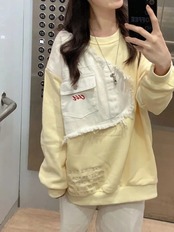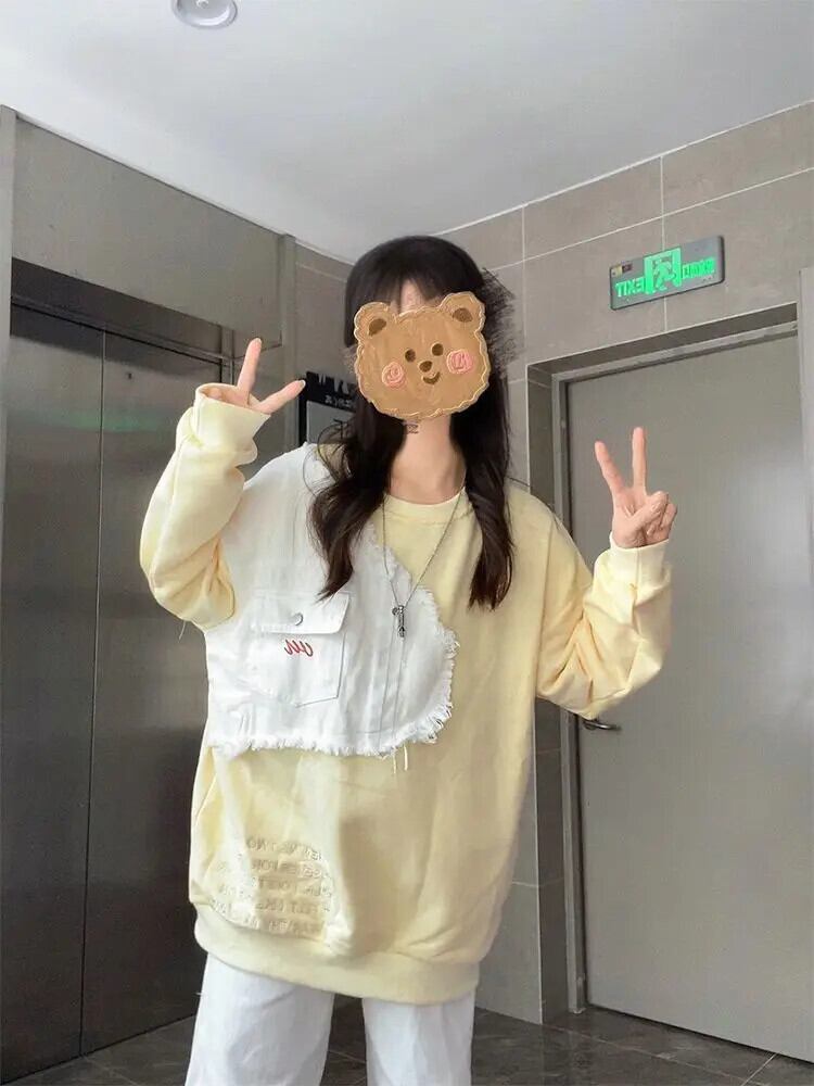 送料無料 アパレル Deeptown Y2k かわいい黄色のパッチワークスウェット女性グランジ Kpop 長袖プルオーバー原宿ストリートオーバーサイズルーズトップス ロング シャツ 大人ガーリー スウィート キュート カジュアル AE121288787774268892937 | mihatudai(みはつばい)ネットショッピングならmihatudai