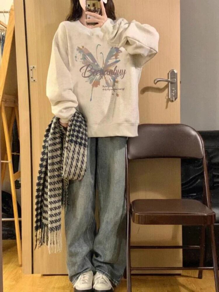 送料無料 アパレル Deeptown スタイルレターグレースウェット女性ギャル E 長袖プルオーバーレトロ Kpop ストリートオーバーサイズルーズトップス ロング シャツ AE121288787724455867613 | mihatudai(みはつばい)ネットショッピングならmihatudai