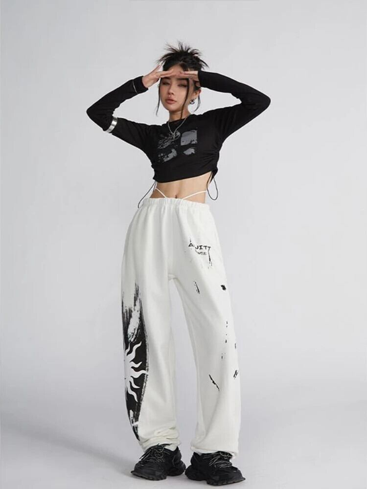 送料無料 アパレル Deeptown Kpop 白だぶだぶのスウェットパンツ女性ヒッピーグランジグラフィティオーバーサイズスポーツパンツ原宿ストリートワイド脚ズボン ホワイト かわいい ワイドレッグ ワイドパンツ AE121288787793099587239 | mihatudai(みはつばい)ネットショッピングならmihatudai