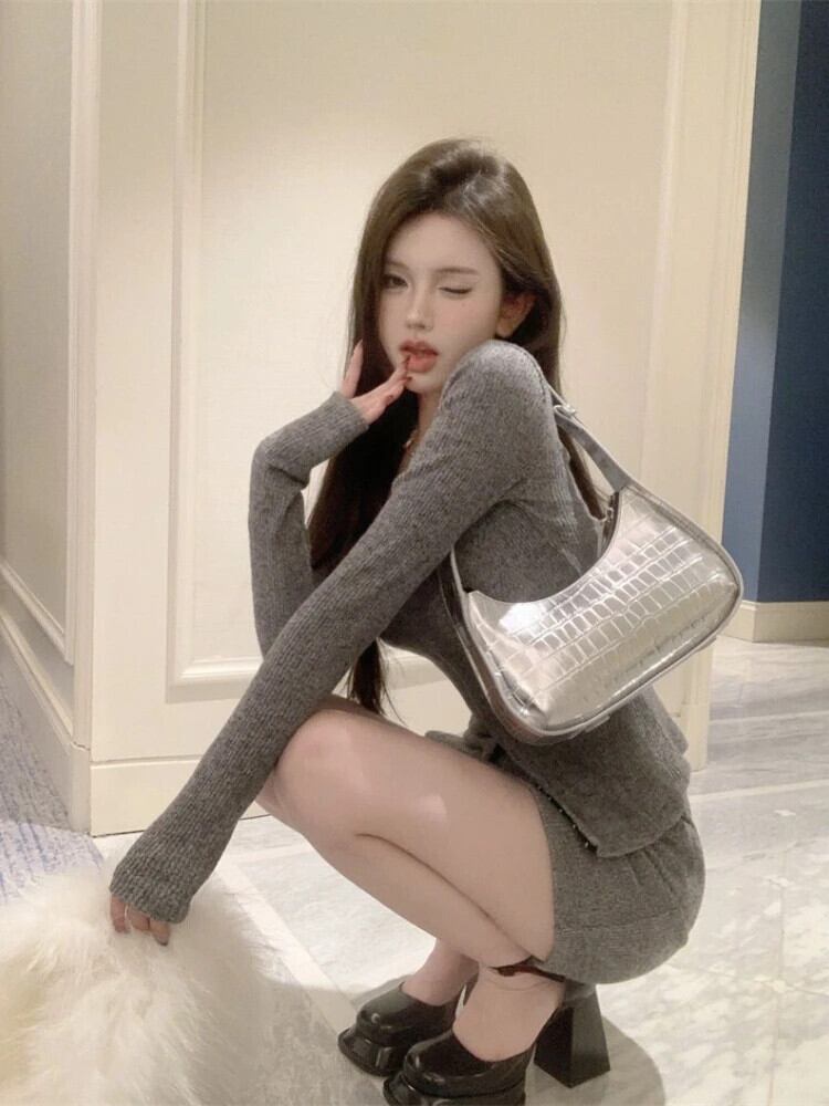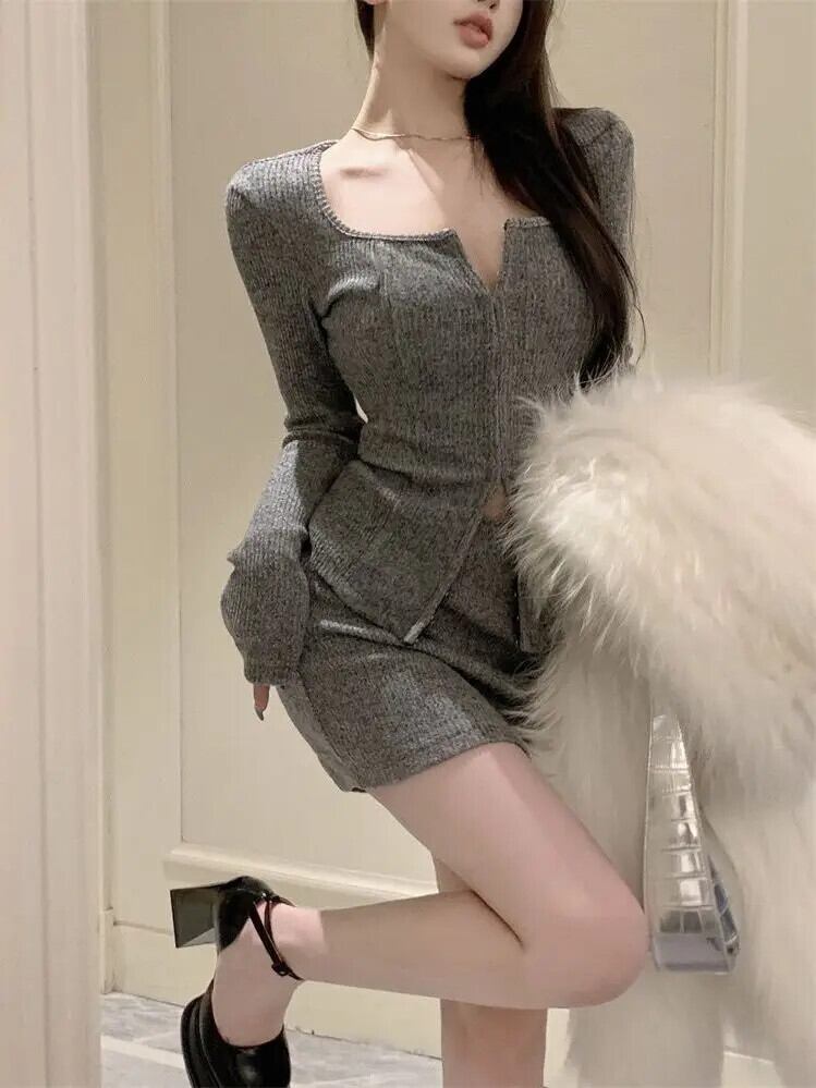 送料無料 アパレル Deeptown ギャルコケットセクシーなグレーツーピースドレス女性スタイルヴィンテージ長袖 Bofycone ミニラップドレスセット冬 ロング ウィンター 冬物 ビンテージ AE121288787791631674215 | mihatudai(みはつばい)ネットショッピングならmihatudai