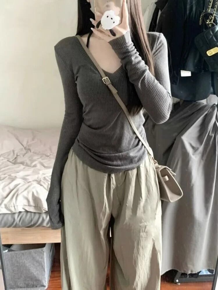 送料無料 アパレル Deeptown Y2k ヴィンテージグレーニット Tシャツ女性スタイル長袖 Tシャツアメリカンレトロセクシーなストリートスリムコルセットトップス ロング ビンテージ AE121288787759544298876 | mihatudai(みはつばい)ネットショッピングならmihatudai