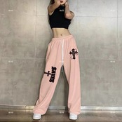 送料無料 アパレル Deeptown Kpop ゴシッククロス白 Weatpants 女性ヒッピーストリートワイドレッグトラックパンツアメリカンレトロオーバーサイズだぶだぶのズボン ホワイト ワイドパンツ AE121288787711034635619 | mihatudai(みはつばい)ネットショッピングならmihatudai