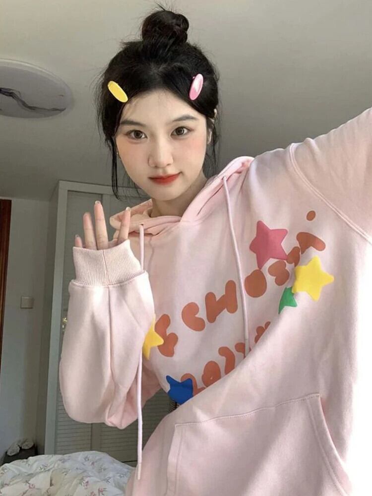 送料無料 アパレル Deeptown かわいい落書きピンクスウェット女性 Y2k 美的長袖フード付きプルオーバー Kpop 原宿オーバーサイズルーズトップ ロング シャツ 大人ガーリー スウィート キュート カジュアル AE121288787763371144246 | mihatudai(みはつばい)ネットショッピングならmihatudai