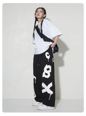 送料無料 アパレル Deeptown ストリートヒップホップスウェットパンツ女性 Y2K 落書きプリントワイドレッグスポーツパンツ特大 Kpop 黒ジョガーズボン ブラック ワイドパンツ AE121288787716270358382 | mihatudai(みはつばい)ネットショッピングならmihatudai