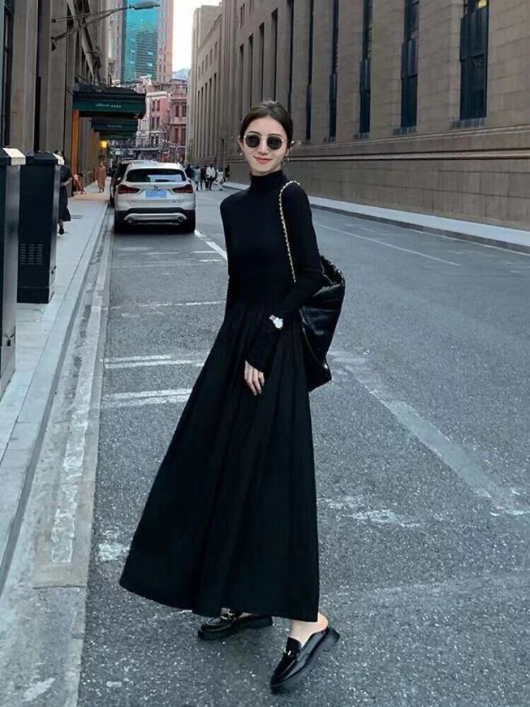 送料無料 アパレル Deeptown スタイル Balck ミディコルセットドレス女性ワンピース長袖タートルネックチュニックドレスレトロ Vestidos 秋 ロング オータム 秋物 AE12128878778797614608 | mihatudai(みはつばい)ネットショッピングならmihatudai