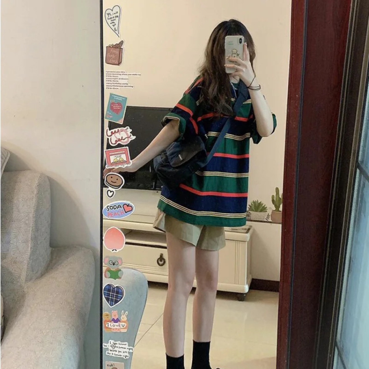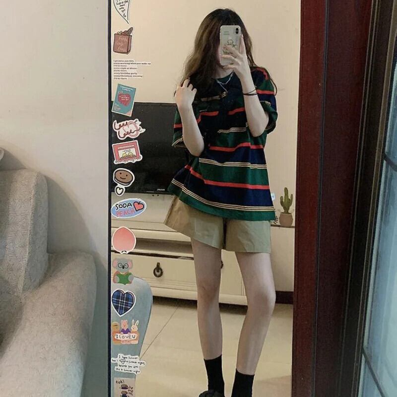 送料無料 アパレル Deeptown アメリカンレトロストライプ Tシャツ女性原宿半袖 Tシャツストリートコントラストカラー特大ルーズトップス ショート ハーフスリーブ かわいい AE121288787724201796829 | mihatudai(みはつばい)ネットショッピングならmihatudai