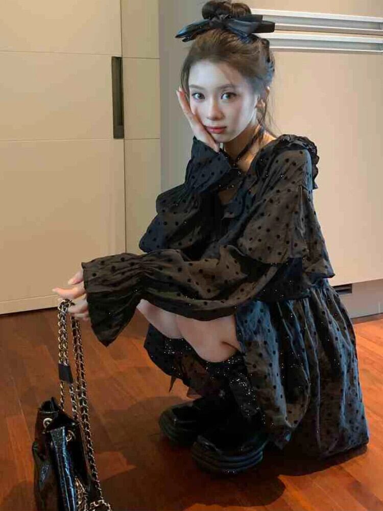 送料無料 アパレル Deeptown スタイル水玉黒ドレス女性 Y2k フェアリーコア甘いフリルワンピースフレアスリーブミニドレスルーズ Vestidos ブラック ラッフル 大人ガーリー スウィート キュート カジュアル AE12128878776156059814 | mihatudai(みはつばい)ネットショッピングならmihatudai