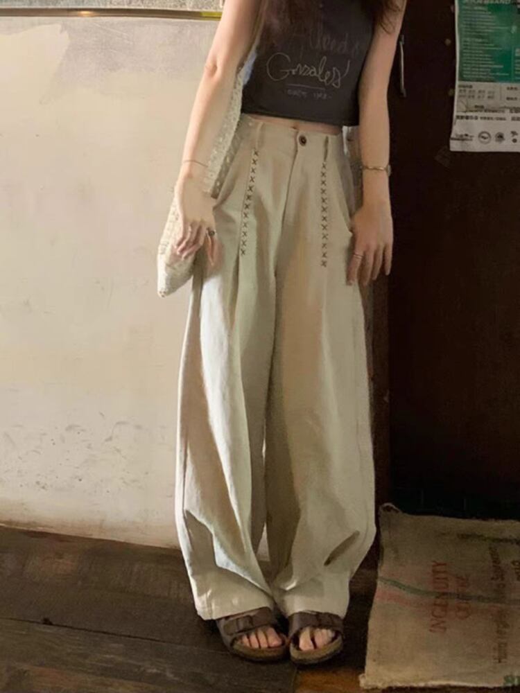 送料無料 アパレル Deeptown ese スタイルカーキワイドレッグパンツ女性ヴィンテージ原宿オーバーサイズだぶだぶのズボンストリートパンタロン かわいい ワイドパンツ ビンテージ AE121288787766096982279 | mihatudai(みはつばい)ネットショッピングならmihatudai