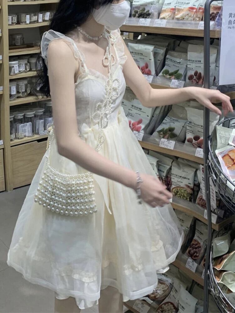 送料無料 アパレル Deeptown かわいいベージュロリータドレス女性 ese スタイル甘い弓メッシュレイヤードウエストミディスリップドレス夏 レッド リボン 大人ガーリー スウィート キュート カジュアル サマー 夏物 AE121288787769575646854 | mihatudai(みはつばい)ネットショッピングならmihatudai