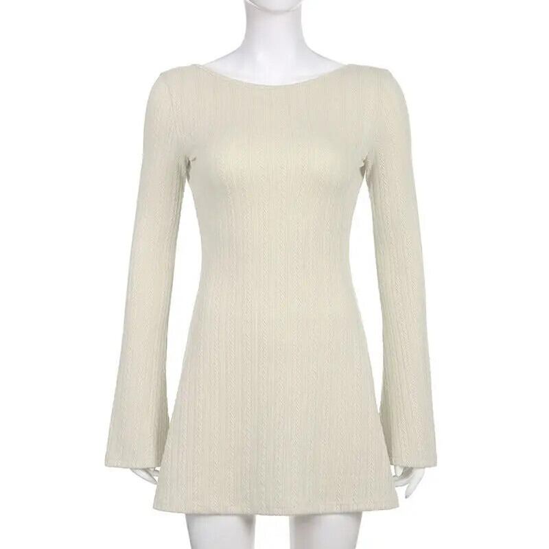 送料無料 アパレル Deeptown Y2k コケットベージュミニチュニックドレス女性アメリカンレトロセクシーな背中の開いたロングフレアスリーブコルセットニットドレス秋 オータム 秋物 AE121288787787862540298 | mihatudai(みはつばい)ネットショッピングならmihatudai