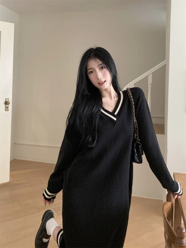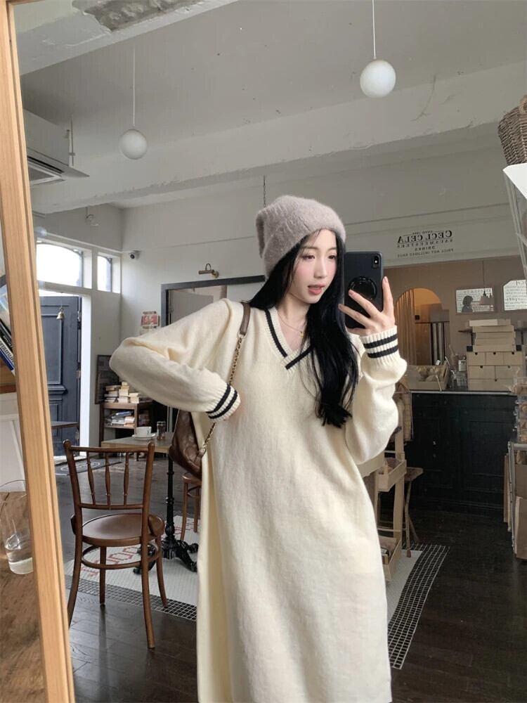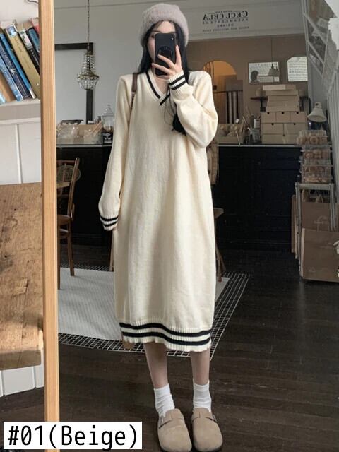 送料無料 アパレル Deeptown スタイルベージュニットドレス女性 Y2k プレッピーストライプ長袖ミディドレス学術オーバーサイズ Vestidos 冬 ロング ウィンター 冬物 AE121288787766155756162 | mihatudai(みはつばい)ネットショッピングならmihatudai