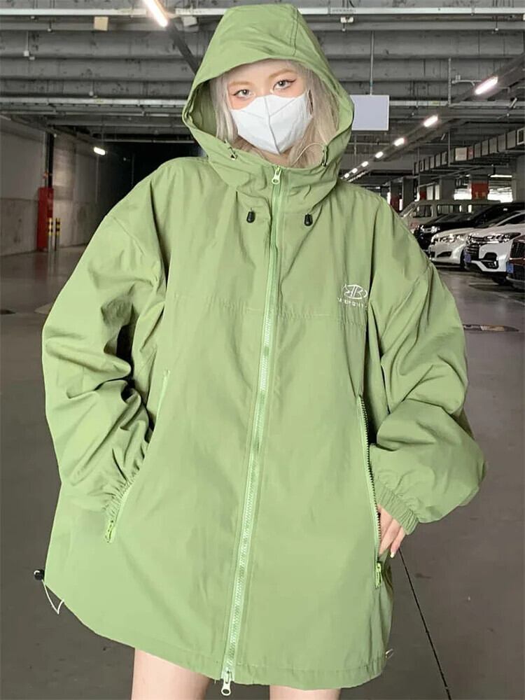 送料無料 アパレル Deeptown Y2K グリーンウインドブレーカージャケット女性オーバーサイズヒップホップストリート黒防水フード付きコート原宿 Techwear アウター ブラック かわいい AE121288787731136162567 | mihatudai(みはつばい)ネットショッピングならmihatudai