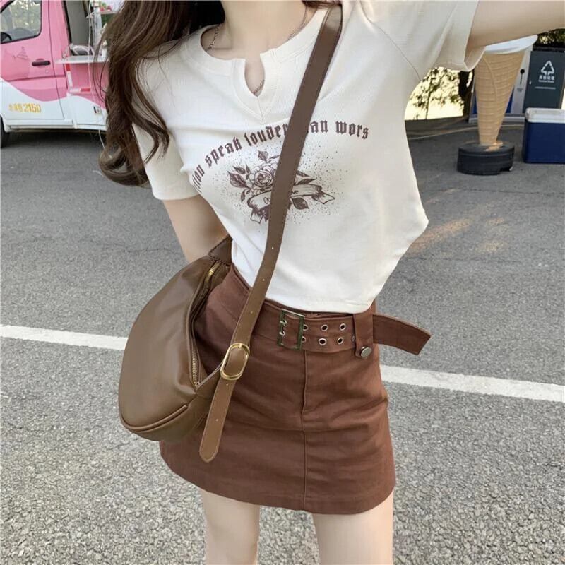 送料無料 アパレル Deeptown Y2k ヴィンテージ不規則なベージュクロップトップス女性スタイルグラフィックプリント半袖 Tシャツ E ストリートスリム Tシャツ ショート ハーフスリーブ ビンテージ AE12128878777610023001 | mihatudai(みはつばい)ネットショッピングならmihatudai