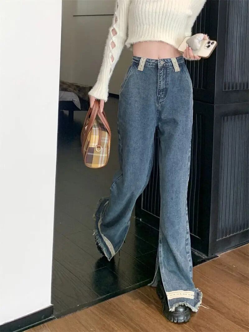 送料無料 アパレル Deeptown ヴィンテージブルーだぶだぶのジーンズ女性 Kpop ストリートスプリットワイドレッグデニムパンツ原宿パッチワークオーバーサイズズボン かわいい ワイドパンツ ビンテージ AE121288787731857077347 | mihatudai(みはつばい)ネットショッピングならmihatudai