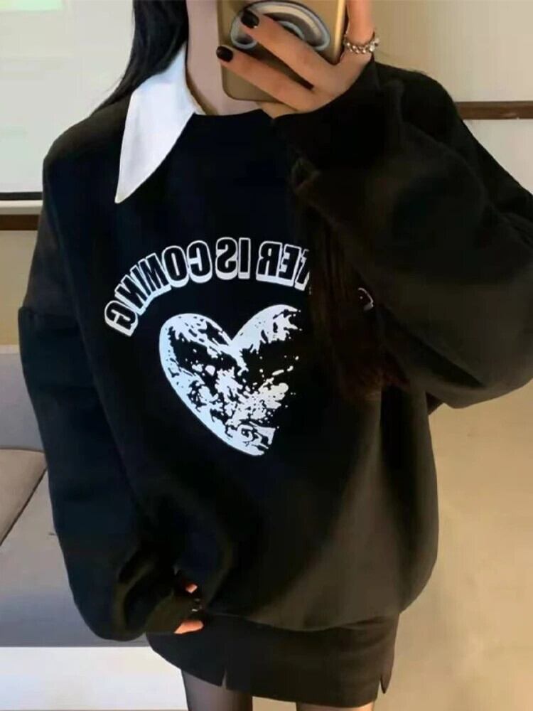 送料無料 アパレル Deeptown レターブラックスウェット女性 Y2k ゴシック長袖プルオーバー原宿ストリートオーバーサイズルーズトップス ロング シャツ かわいい AE121288787796390031886 | mihatudai(みはつばい)ネットショッピングならmihatudai